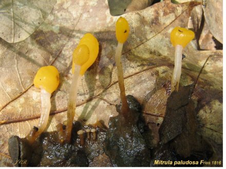 strictement associée à l’anémone Sylvie ou encore le curieux Mitrula paludosa qui croît sur les débris végétaux recouverts d’eau.