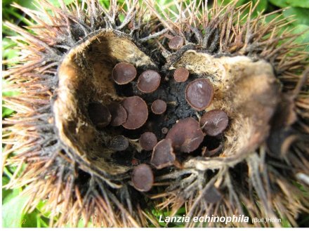 ou Lanzia echinophila sur bogues de châtaignes dégradées
