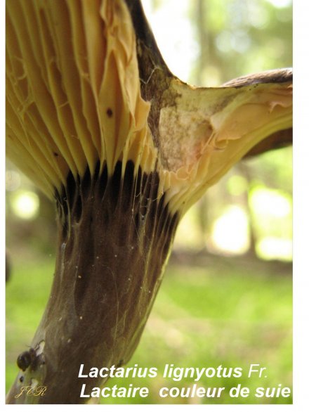 ou encore le très beau Lactarius lignyotus qui offre un beau contraste entre ses lames claires et son stipe brun.